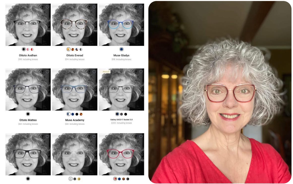 I’m trying on eyeglass frames, virtually. Is this not a cool tool? I’m going to get red ones, almost certainly, because why not? A statement, of exactly what a little undefined, but with verve! 😁