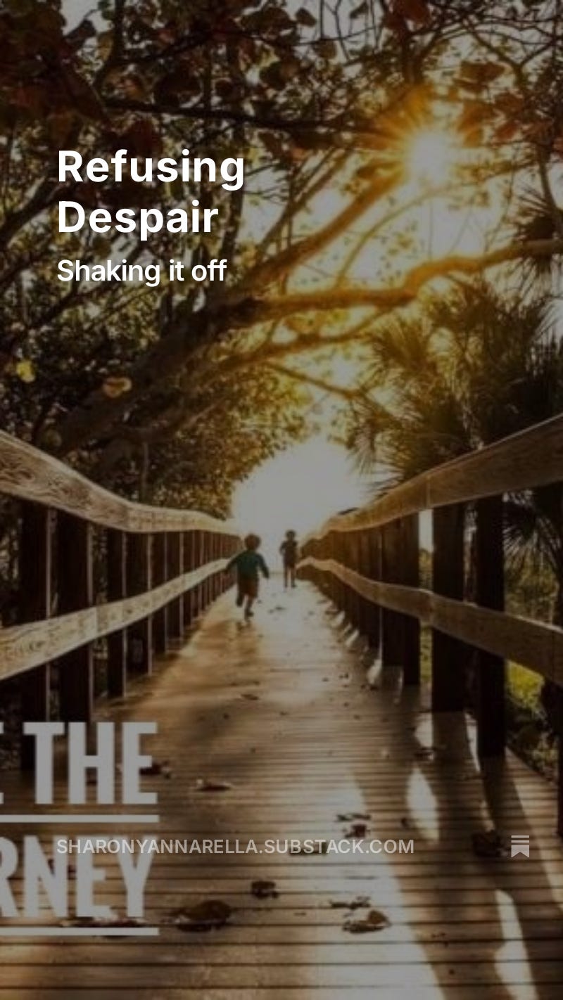 I do not approve, I won’t accept it, I will do everything I can to resist it, including not despairing. Why? Well, honestly, I have a lot of the contrarian in me. The moment you tell me I cannot do something, I will do it or die. Seriously. So there’s that. But there are other less personal and more substantive reasons, such as the inducement of despair being used as a weapon, one that bullies employ—along with fear and dread—with great glee. And success.