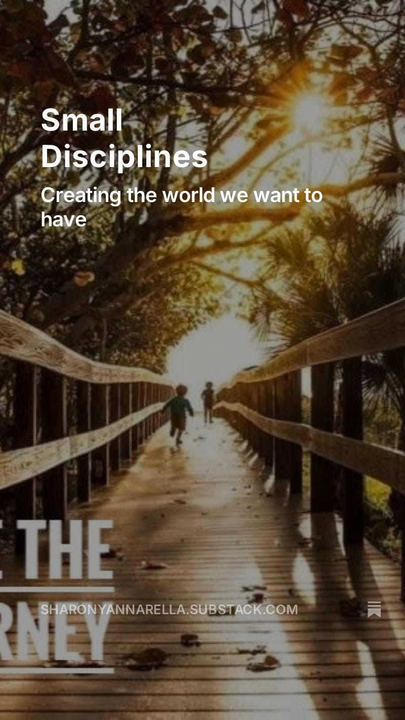 Small disciplines. Hundreds of small, singular choices and decision points, in the course of a day, in all the days in a lifetime. In time, small disciplines turn into personal rules and they become our SOPs, our standard operating procedures. We no longer have to think about doing them, they just hum along in the background of our day, effortlessly generating our actions and responses to life happening. They become our default settings, these small disciplines.