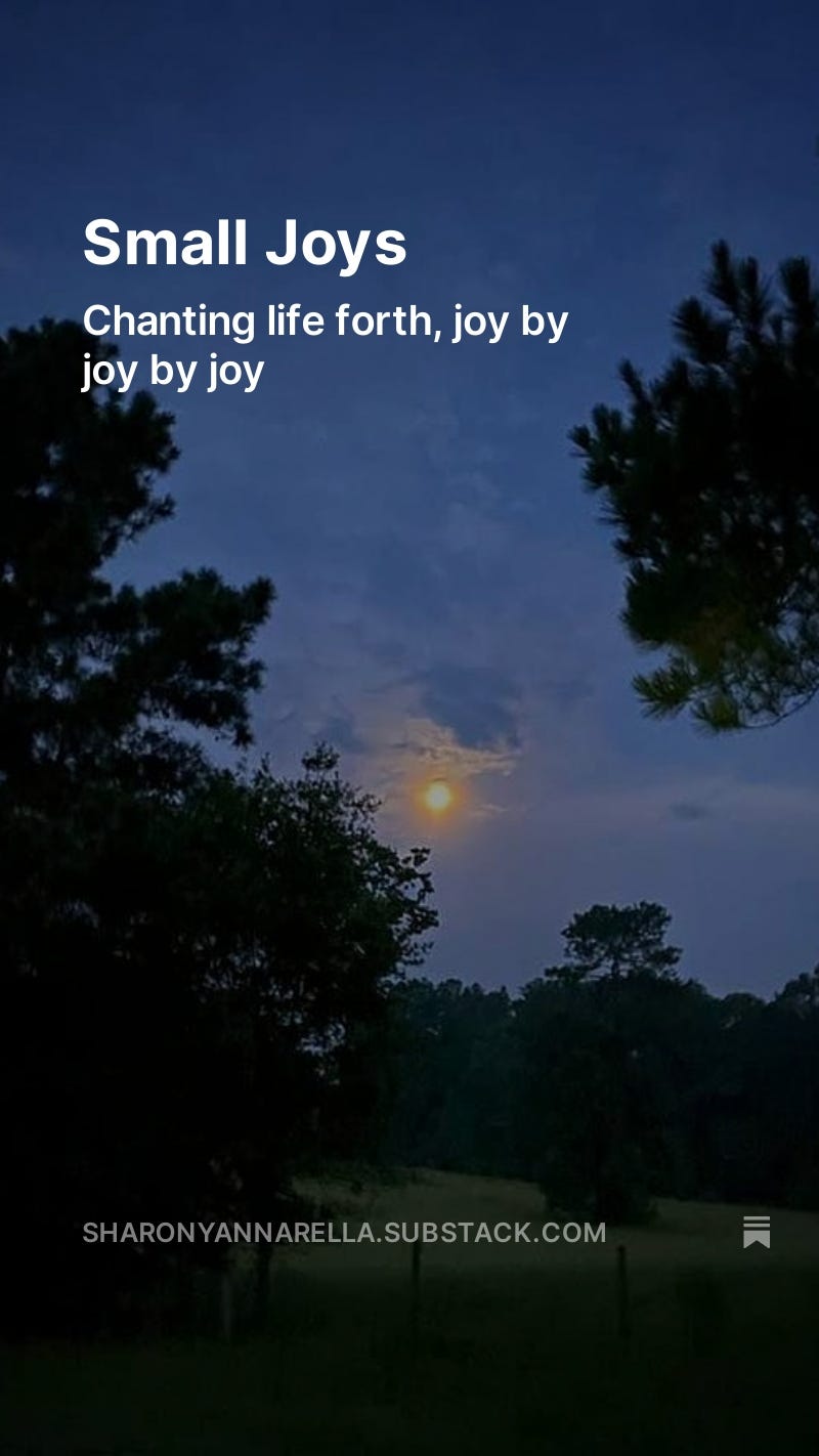I swear by delighting in these small joys as an antidote for so much that grieves us. The act of thinking of these, writing them down, naming them out loud… it’s a way of being grateful, really, that we are so rich in small joys, and we let that slip away from us, out of our thoughts, and I don’t know why we do that. Let’s not do that.