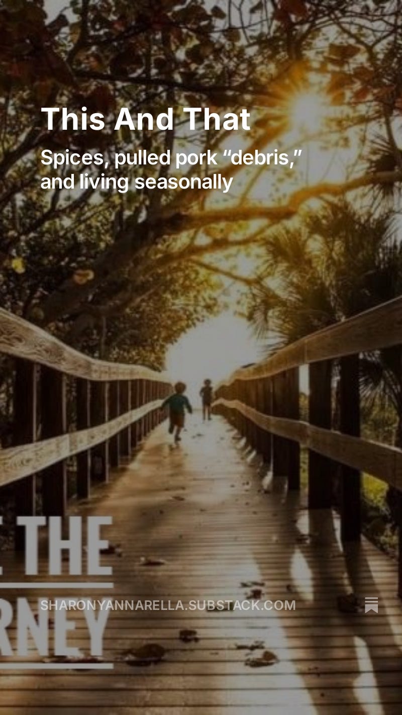 Spices, pulled pork “debris,” and living seasonally